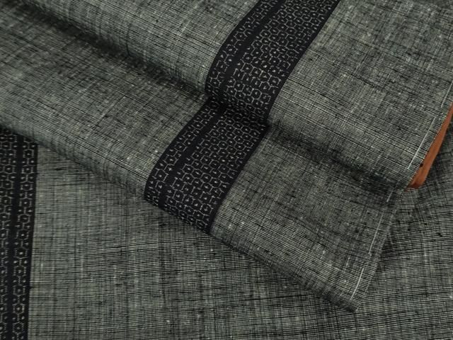 平和屋本店 上 紬 刺し子 総刺繍 名物裂花間道 煤色地 DZAB1107kh5