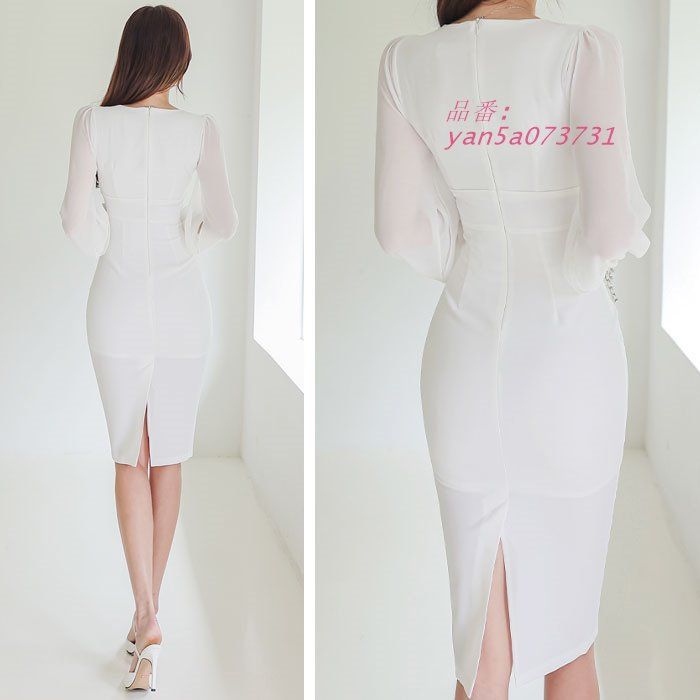 胸元Vネック開き ハイエスト膝丈タイト長袖ワンピース 白 青 セクシー タイト 胸開き キャバ 韓国 ドレス スナック yan5a073731の検索結果
