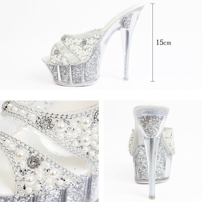 再入荷 15cmヒール 22.0cm~24.5cm 送料無料 Angel R | エンジェルアール ダブルビジュー×ラメクリアハイヒールサンダル SH026 NICORILABO_COM