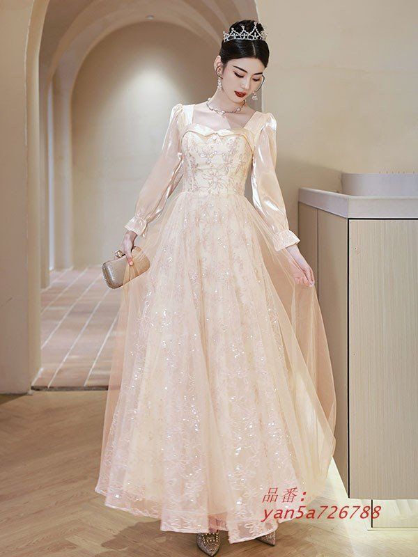 ドレス 大人 ピアノ 発表会 ロングドレス 大きいサイズ ロング 長袖 小さいサイズ 結婚式 演奏会 母親 キラキラ 演奏会用ドレス 袖付き yan5a726788 NICORILABO_COM