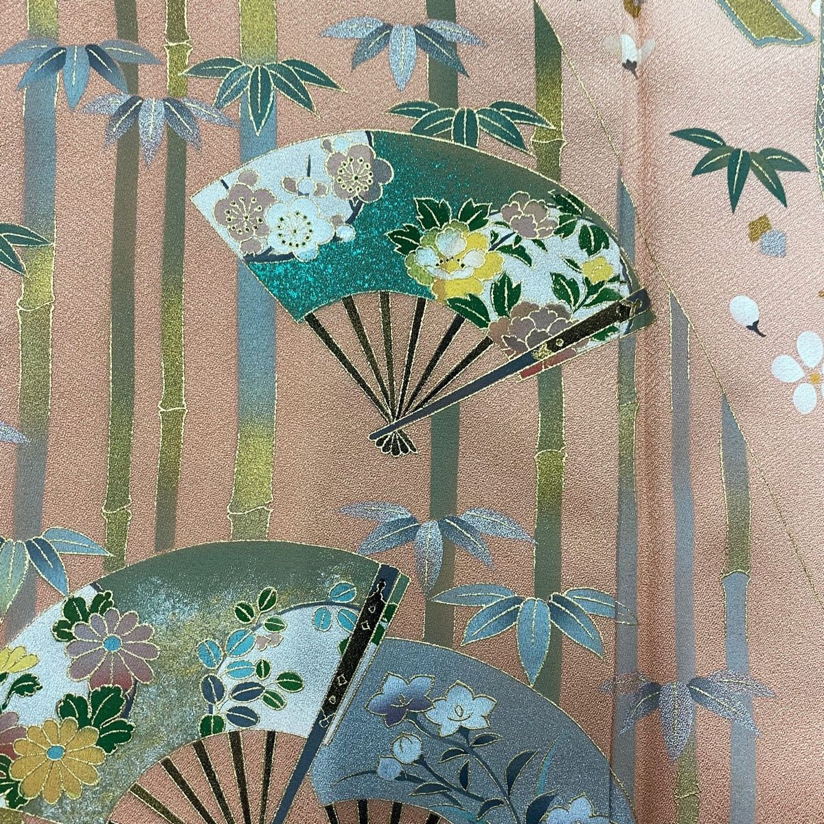 訪問着 身丈165cm 裄丈66cm M 袷 竹 草花 金銀彩 ぼかし ピンクベージュ 正絹 秀品の検索結果