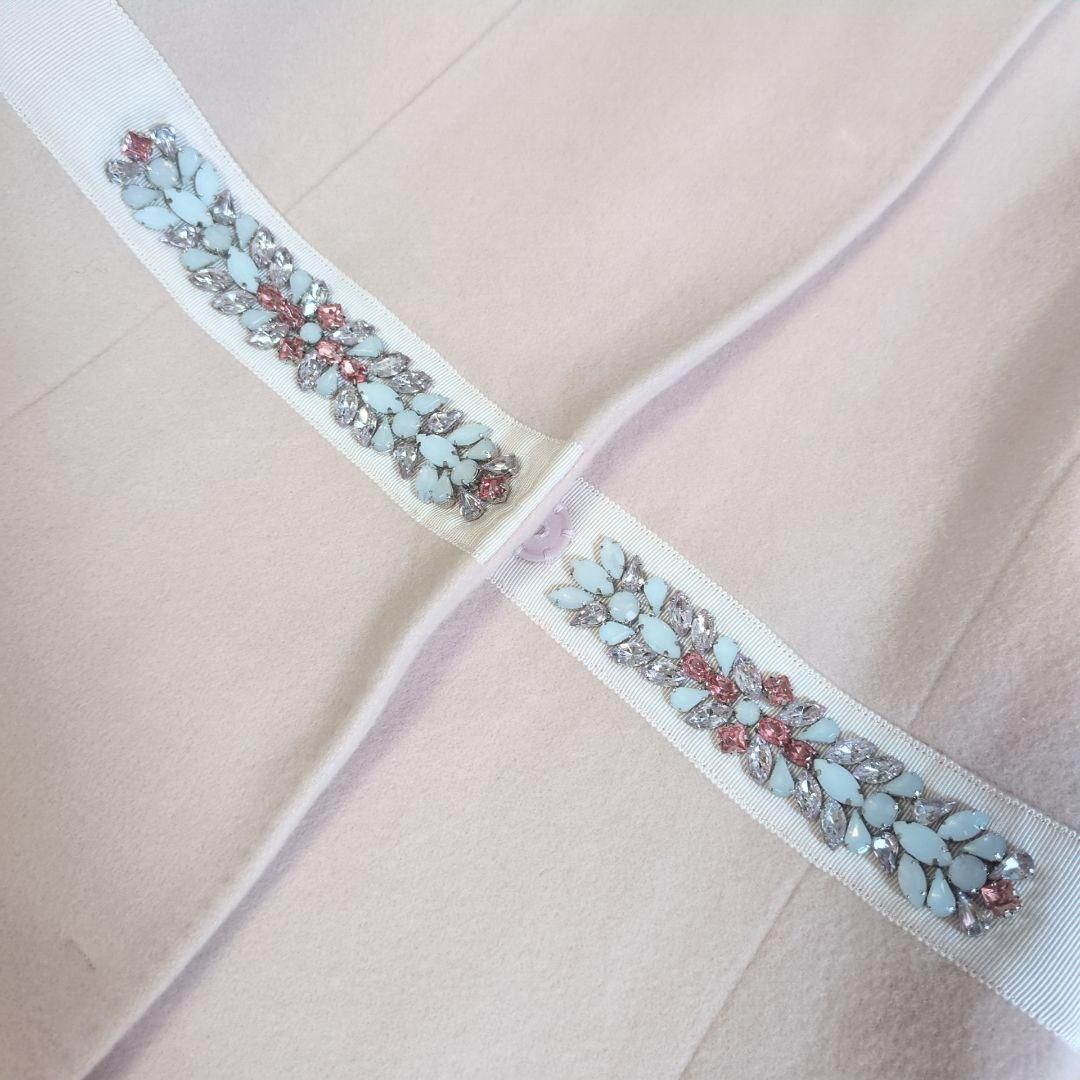️TOCCA トッカ 受注生産品 ADINA カシミヤ混ロングコート ピンク ビジュー付き 近年 ロングコート ステンカラーコート Aライン 襟付き 羊毛 ナイロン カシミヤ ポケット付き サイズ2 ピンク NICORILABO_COM