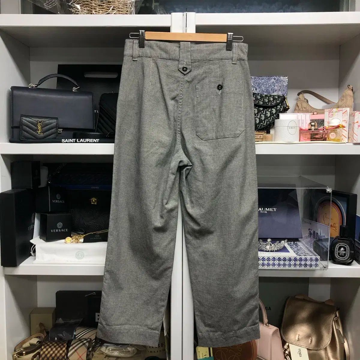 シャツやニットと合わせるとクラシックで高級感のある雰囲気になり、基本トップスとコーデしてもスタイリッシュに馴染みます。
