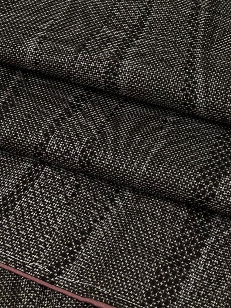 紬 身丈169cm 裄丈66.5cm M 袷 華文 幾何学模様 焦茶色 正絹 秀品