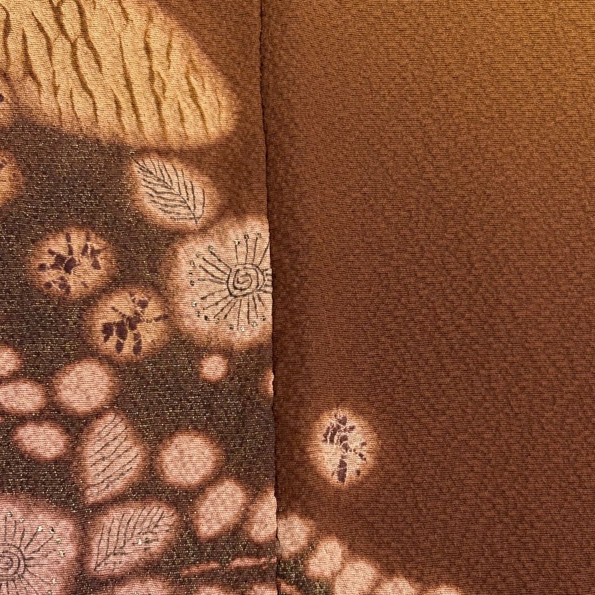 訪問着 身丈153cm 裄丈62cm S 袷 滝泰 落款 辻ヶ花 金彩 金糸 茶色 正絹 名品の検索結果