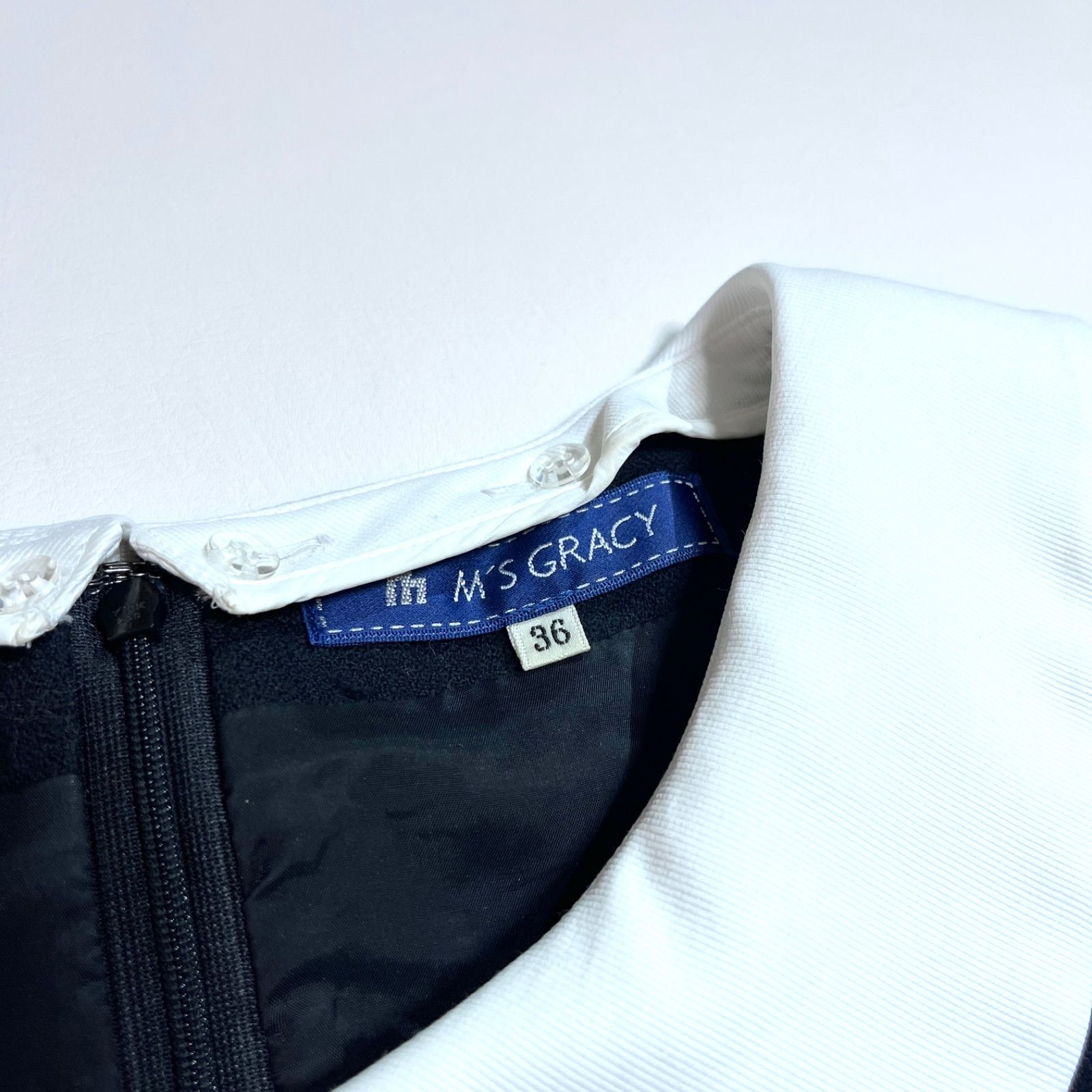 cj78 M’S GRACY ウール ワンピース 膝丈ワンピース サイドギャザー 付け襟 取り外し カメリアボタン 長袖 エムズグレイシー NICORILABO_COM