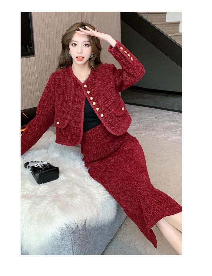 ツイード セットアップ 上下 レデイース ノーカラージャケット ツイードジャケット ツイードスカート スーツ 入学 入園 卒園 卒業 結婚式 忘年会 OL 韓国風 xxf02 NICORILABO_COM