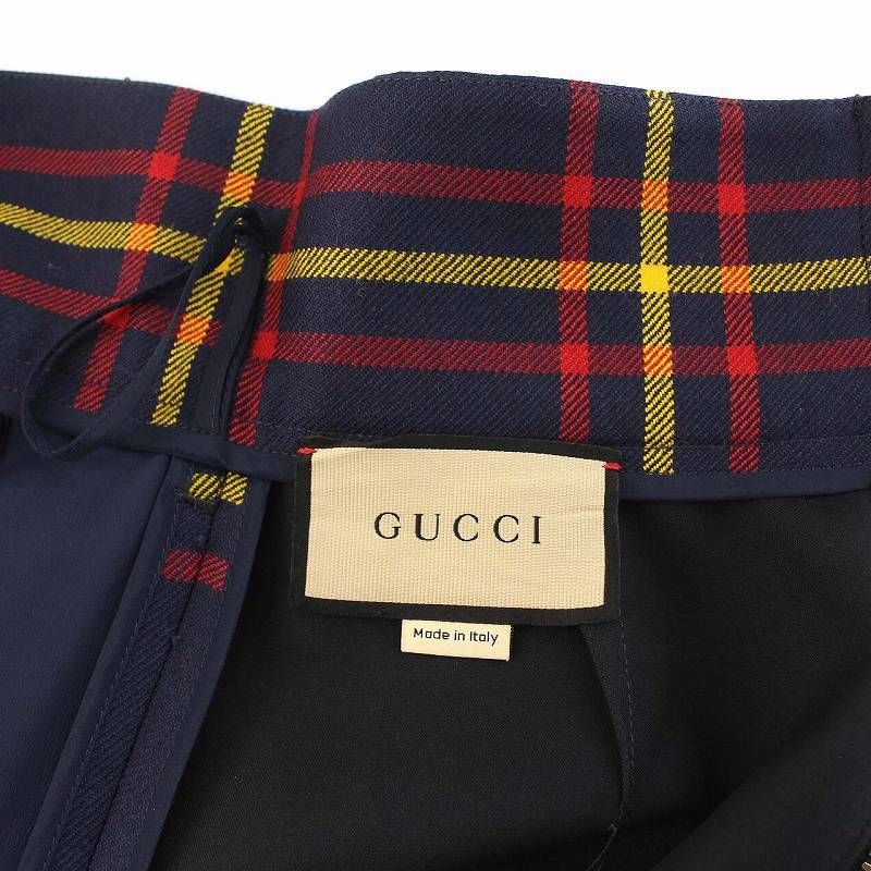 グッチ GUCCI 23SS タータンチェック ウールスカート タイト ハイウエスト ジップ 36 XS 紺 ネイビー 711750 | K NICORILABO_COM