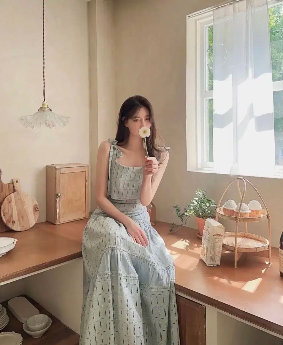 AMOMENTO ロング丈ワンピース ベージュ