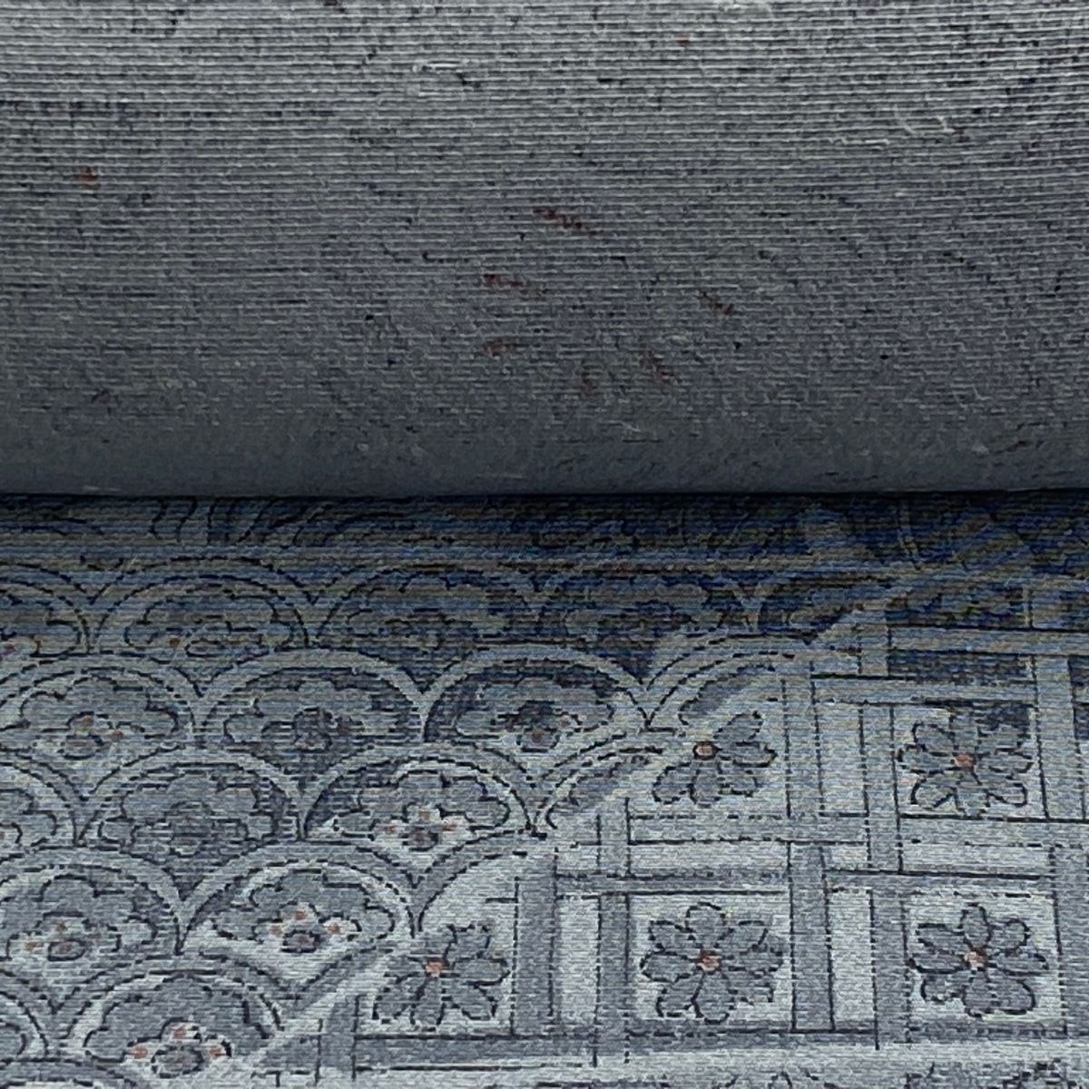 反物 秀品 小紋 草花 青海波 灰色 正絹