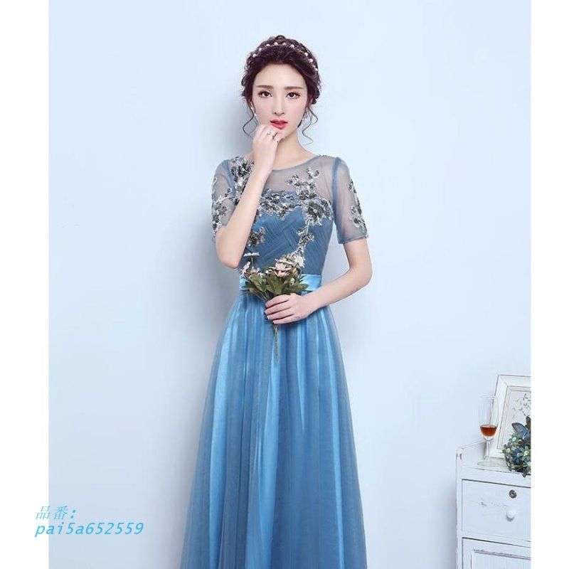 パーティードレス 袖あり 結婚式 ロング丈ドレス Aラインワンピース フォーマル 演奏会 お呼ばれ 謝恩会 卒業式 二次会 同窓会成人式 大きいサイズ 入学式 pai5a029155