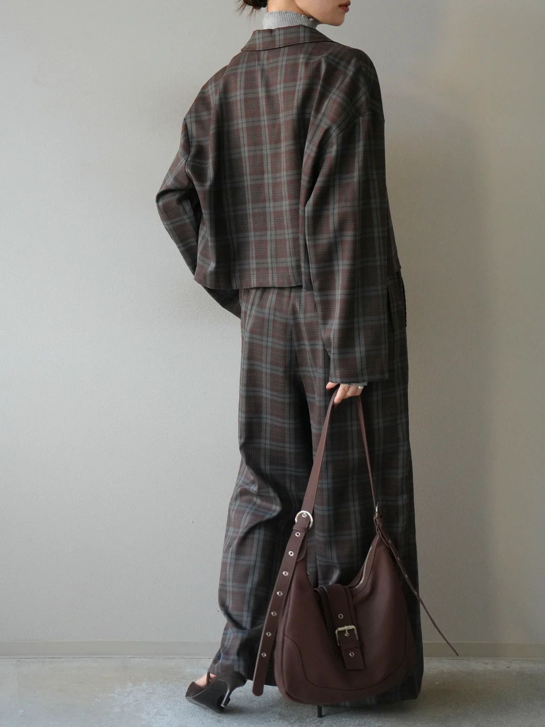 チェック柄ショートジャケット チェック柄イージーパンツ ブラウン Lumier リュミエの検索結果