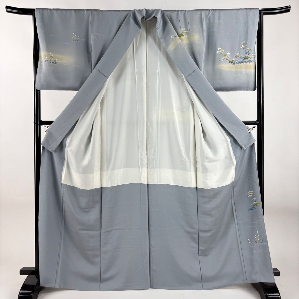 訪問着 身丈166cm 裄丈64.5cm M 袷 落款 舟 松 ぼかし 染め分け 青灰色 正絹 秀品の検索結果