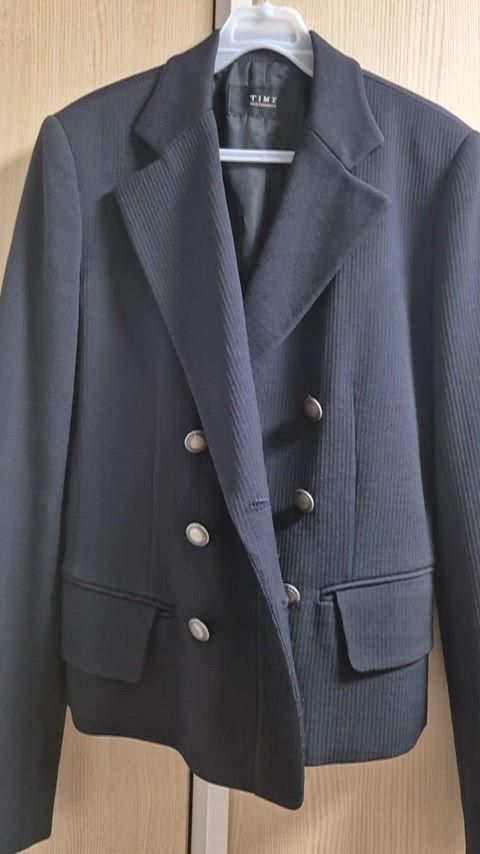 TIME ブラック ダブル ボタン ショートジャケットです。