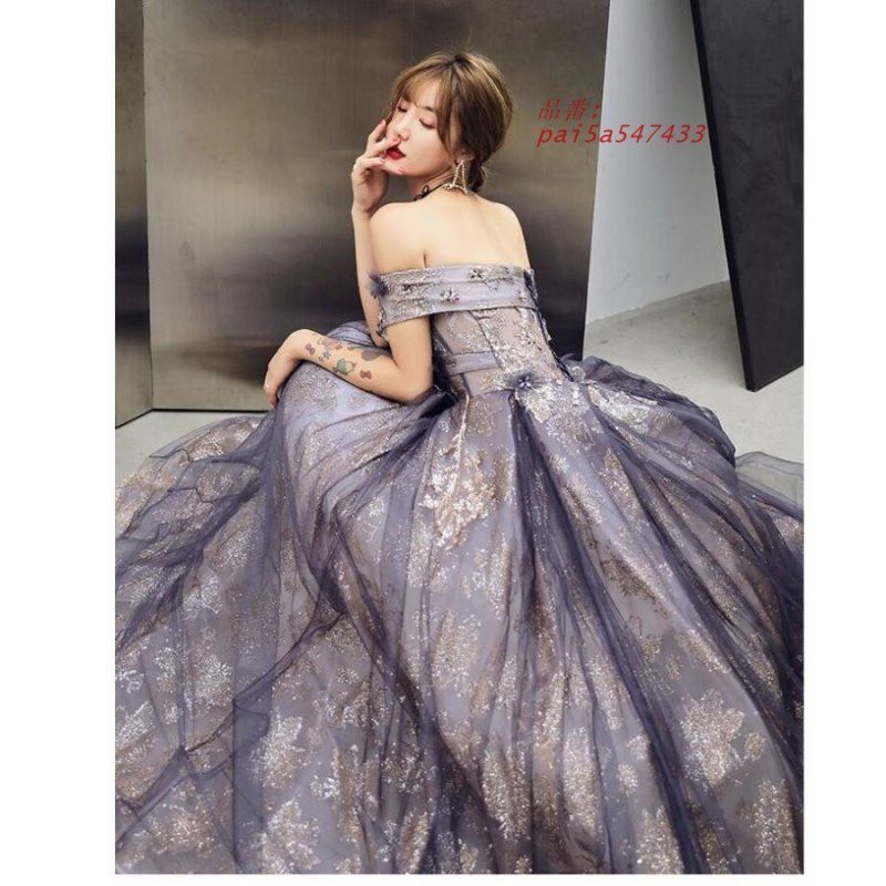 オフショルダー ロング丈ドレス ウエディングドレス パーティードレス ステージ衣装 二次会 成人式 Aラインワンピース 発表会 結婚式ドレス 披露宴演奏会 pai5a547433 NICORILABO_COM