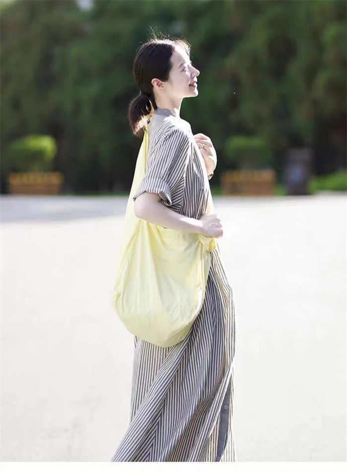 シャツワンピース 夏 ストライプ シャツワンピース レディース 半袖 ノーカラー ロングワンピース 立ち襟 シャツワンピ ストライプ マキシ丈 ロング丈 前開き 大きいサイズ ゆったり きれいめ Aライン 体型カバー 着痩せ xzdslqh NICORILABO_COM