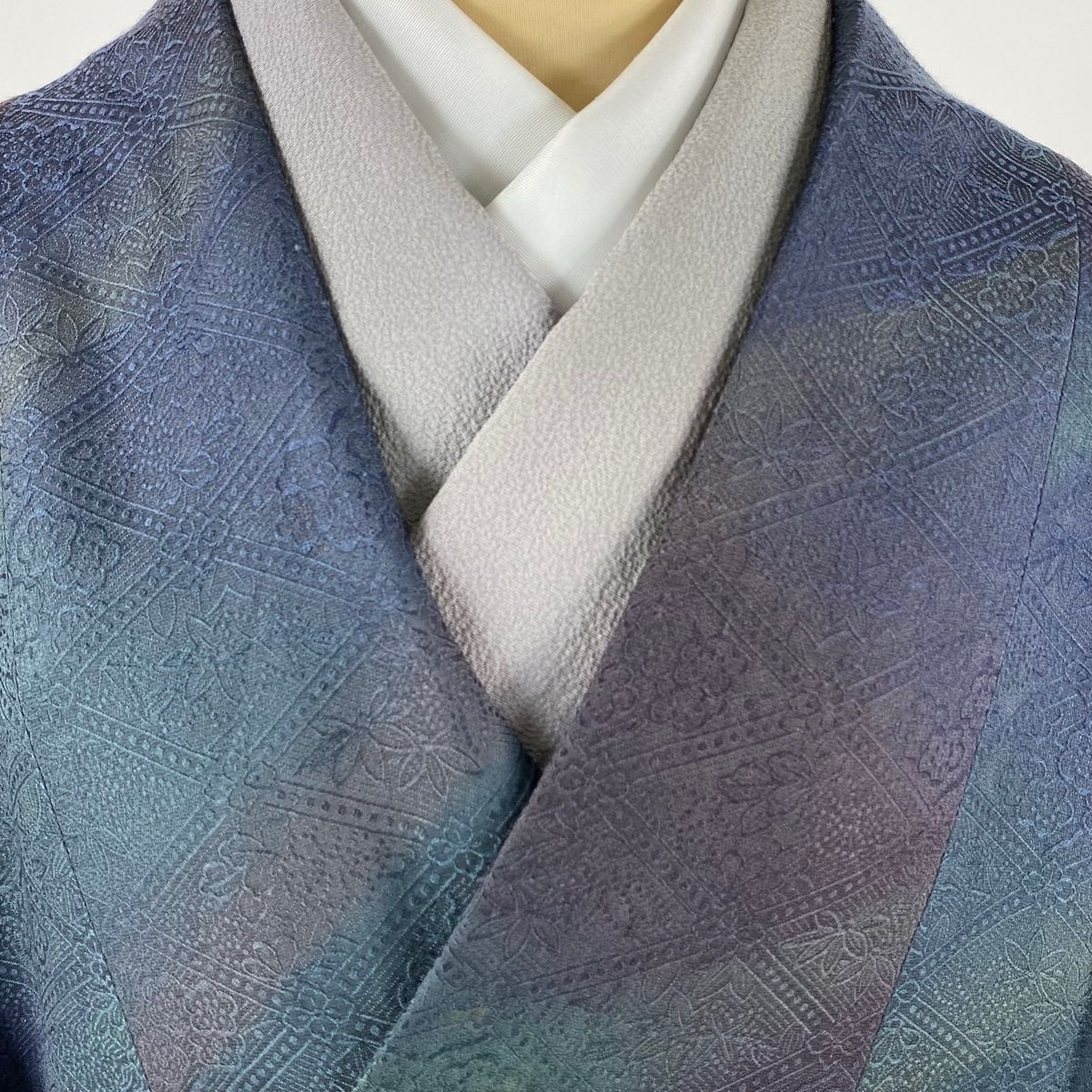 道中着 身丈119.5cm 裄丈63cm S 和装コート 着物衿 地紋 灰紫 正絹