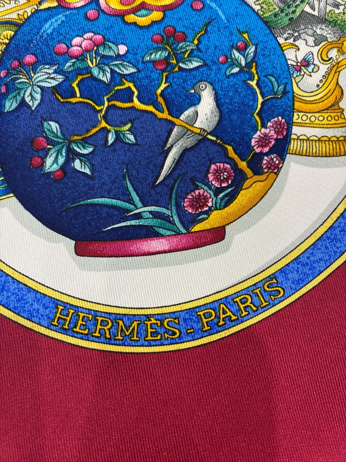 ♥ HERMES エルメス カレウォッシュ90 シルク100% ヴィルジニー ジャマン フランス製 レッド 赤系 エトリエの競演 レディース 送料無料