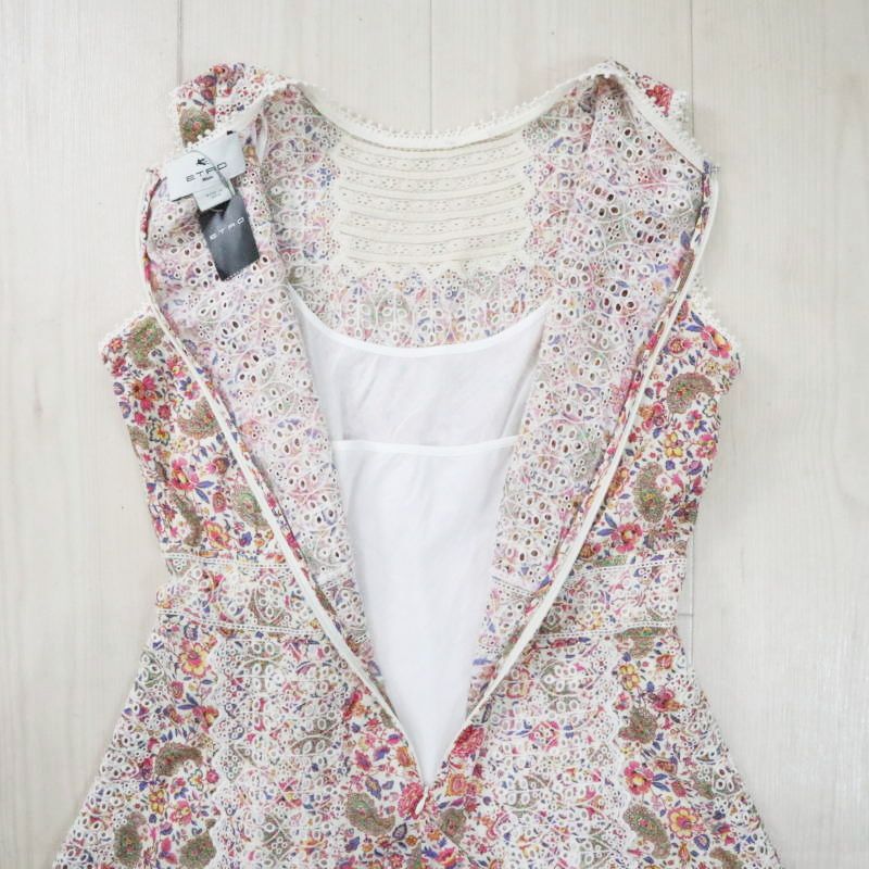 ETRO エトロ フラワー|ペイズリー柄 刺繍 コットン|ポリエステル|ナイロン ノースリーブ ワンピース 44 マルチカラー T07-k163 NICORILABO_COM