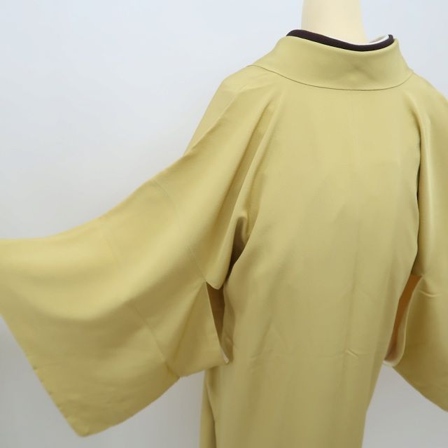 道中着 身丈94cm 裄丈66.5cm M 和装コート 紬地 水面 金彩 茶緑色 正絹 名品