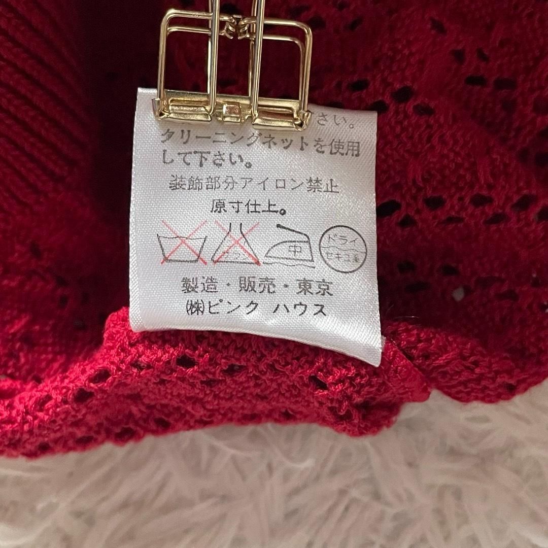 ピンクハウス PINK HOUSE 半袖 透かし編み カーディガン ヴィンテージ 90s 80s 花束 花柄 立体 クルーネック 金子功 カネコイサオ レッド 赤 サイズ表記なし フリーサイズ WWW_NICORILABO_COM