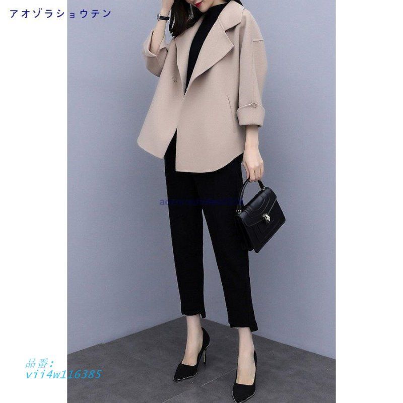セットアップ レディース 冬 パンツ ラシャコート パンツセット 九分丈パンツ ツーピース 九分袖 上下セット 無地 パンツスーツ 通勤 セット vii4w116385 WWW_NICORILABO_COM