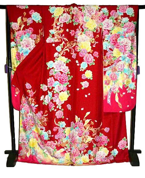 振袖 着物 送料無料 最高峰 赤 金彩 金彩網目模様 花柄 身丈174.5cm 裄丈67cm 正絹 成人式 T3650の検索結果