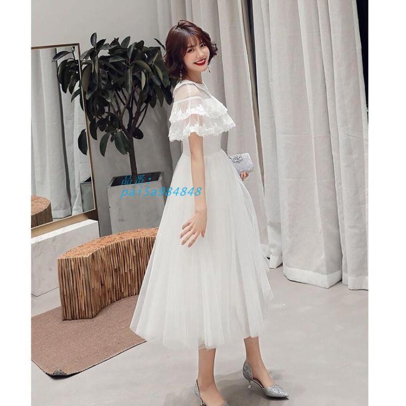 上品 ウエディングドレス Aラインワンピ パーティードレス ミモレドレス 20代 披露宴 卒業式 30代40代 お呼ばれ 成人式 謝恩会 二次会 pai5a123561