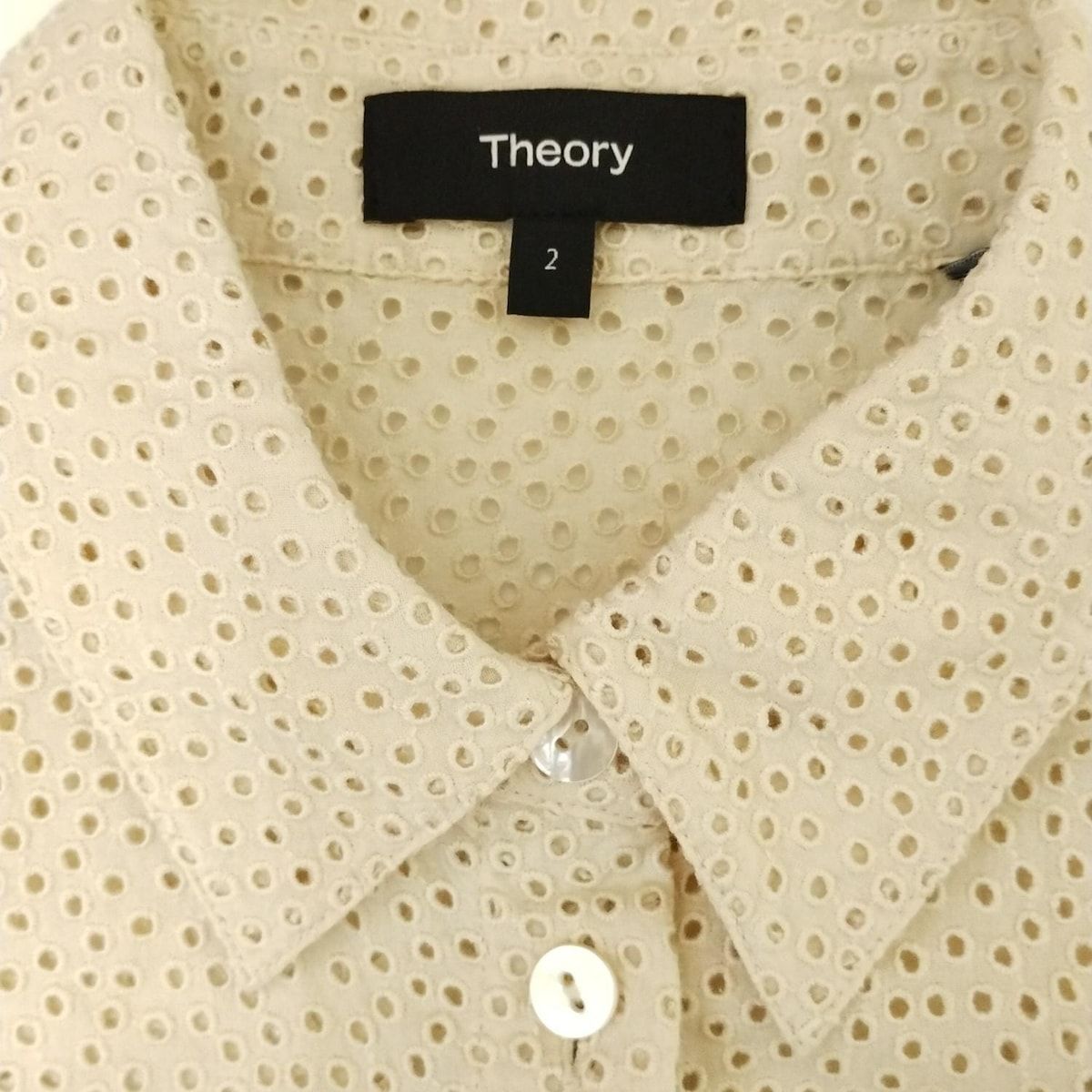 theory セオリー ワンピース サイズ2 S レディース - ベージュ レギュラーカラー|半袖|ひざ丈|刺繍|シャツワンピ|フリル WWW_NICORILABO_COM