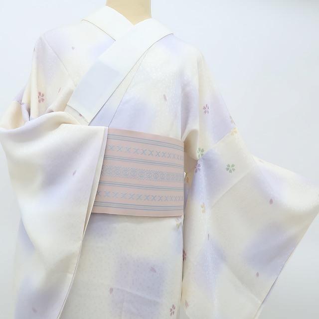 美品 正絹 着物 袷“冬の空が繋ぐ市松にしゃれた桜吹雪☆”長襦袢 P-23