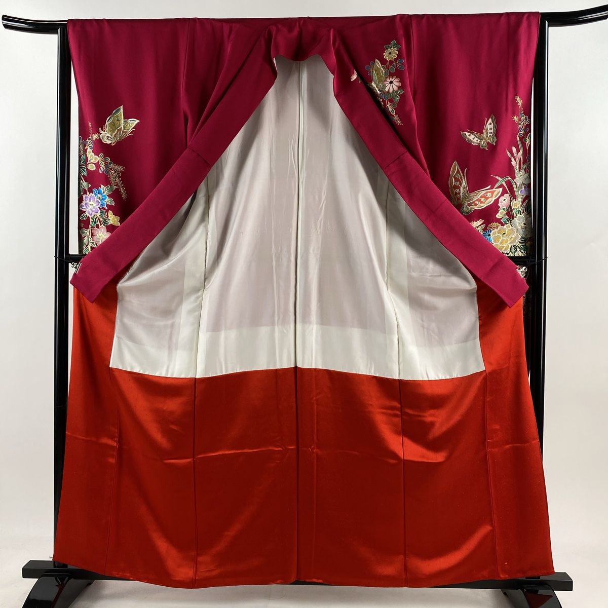 振袖 身丈162cm 裄丈64.5cm M 袷 蝶 花車 金糸 金銀彩 濃ピンク 正絹 秀品の検索結果