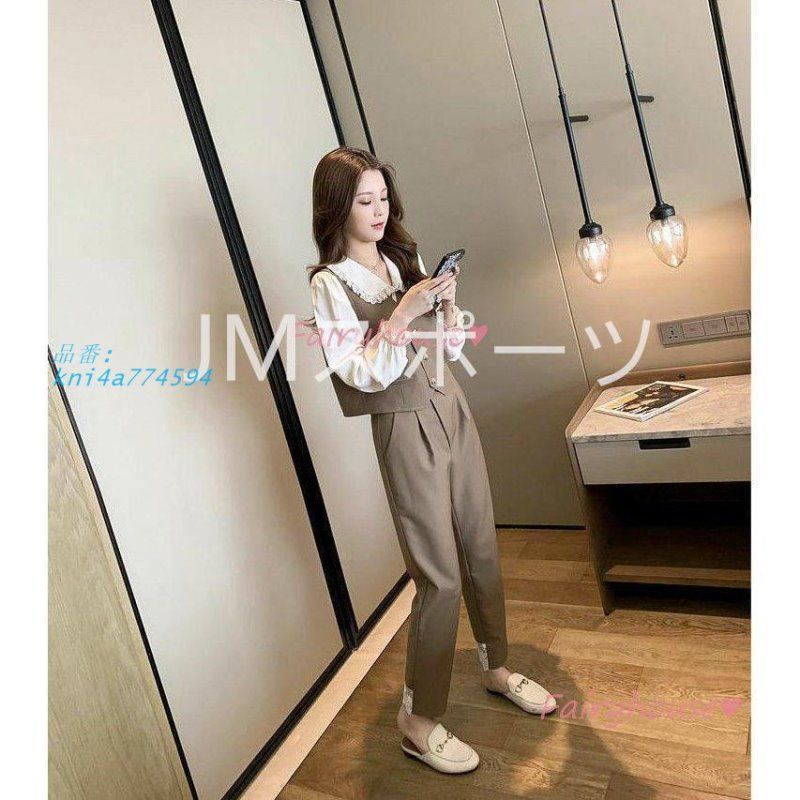 セットアップ レディース 秋服 オシャレセットアップ 長袖ブラウス ベストジャケット 通勤OL 卒業式 入学式 3点セット 九分丈パンツ 大人40代 オフィス kni4a774594 WWW_NICORILABO_COM