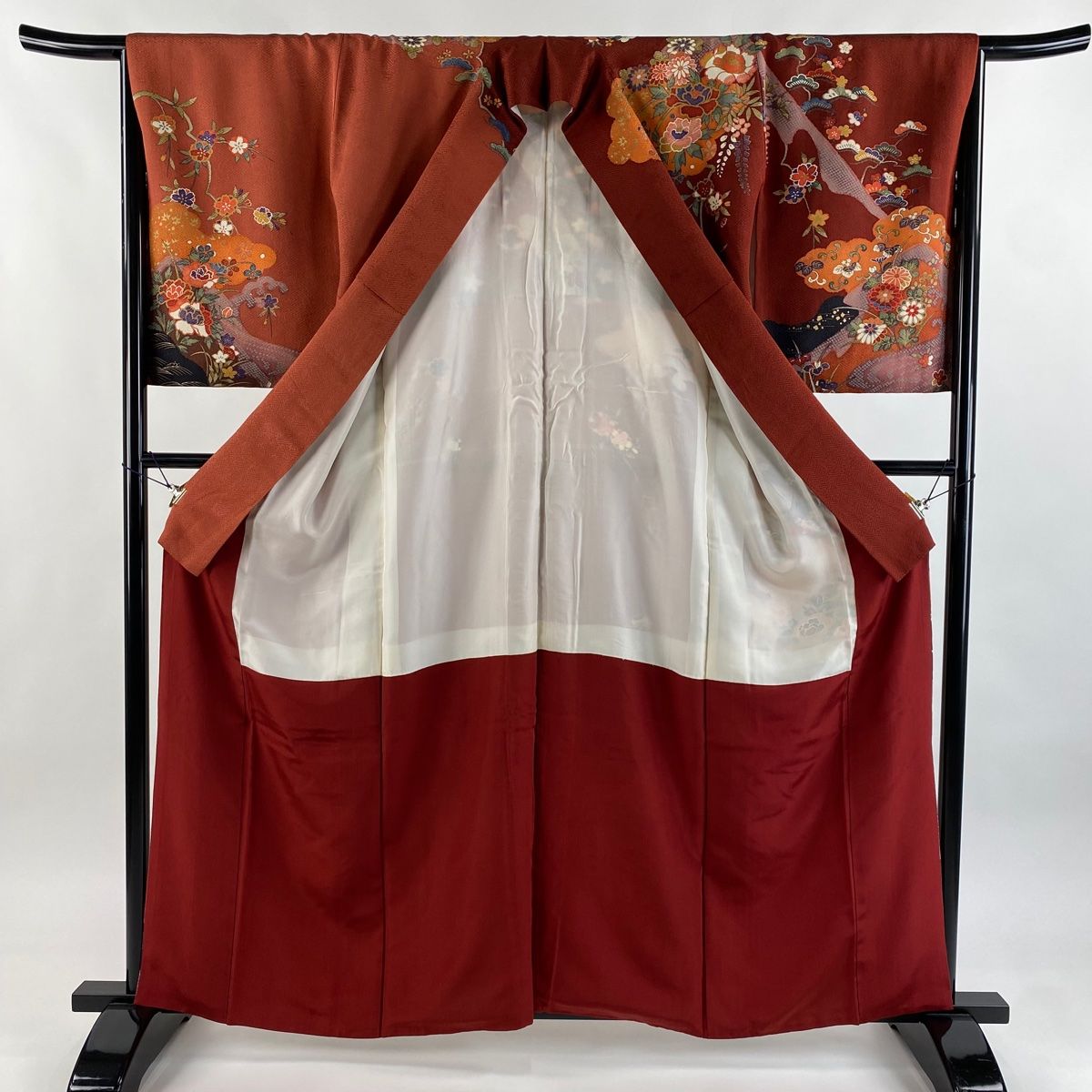 訪問着 身丈161cm 裄丈65.5cm M 袷 ますいわ屋 松竹梅 牡丹 金彩 染分け 赤茶 正絹 名品の検索結果