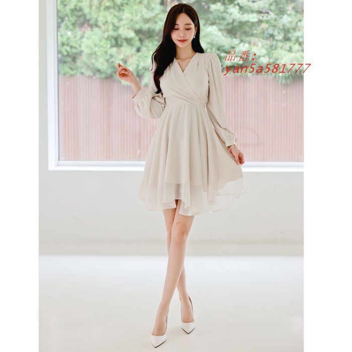 ボリューム長袖カシュクール胸元 ショートフ ワンピース ベージュ 大人 カジュアル 上品 韓国 ファッション 服 yan5a581777の検索結果
