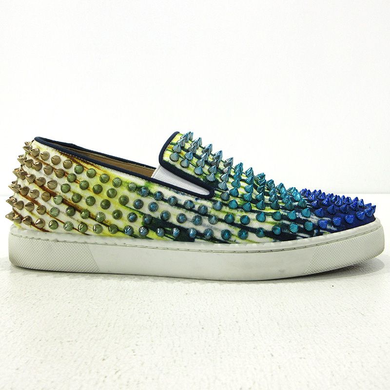 三重本店 Christian Louboutin | クリスチャンルブタン スリッポン スタッズ ブルー×ゴールド サイズ 39 1|2 135 WWW_NICORILABO_COM