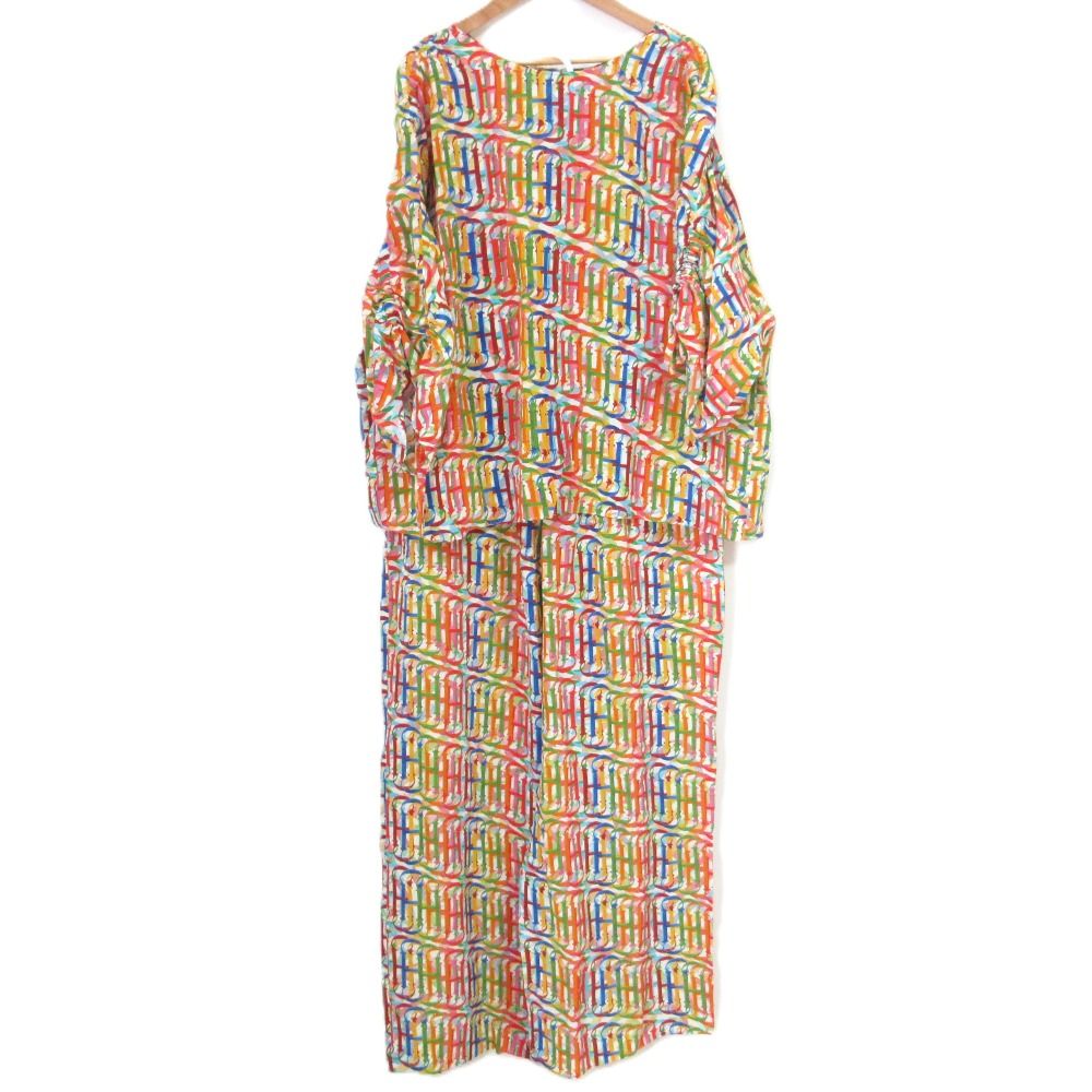 CAROLINA HERRERA キャロライナヘレラ CHマルチ ロゴプリント ブラウス ワイドパンツ セットアップ サイズL マルチカラー レディース 古着 WWW_NICORILABO_COM