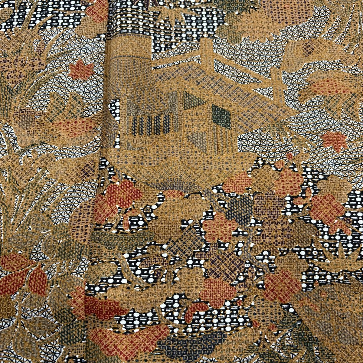小紋 身丈165.5cm 裄丈67.5cm L 袷 落款 建物 松竹梅 山吹茶色 正絹 秀品の検索結果