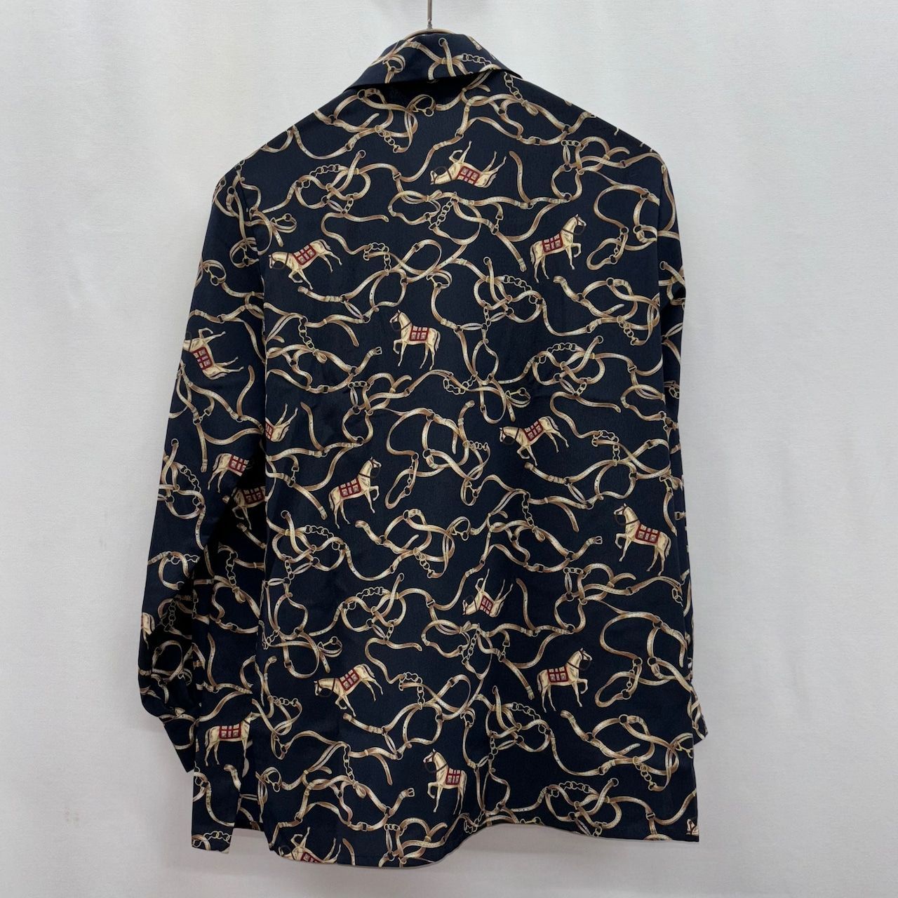 ラルフローレン シルクネイビー シャツ ゴールド ロゴ