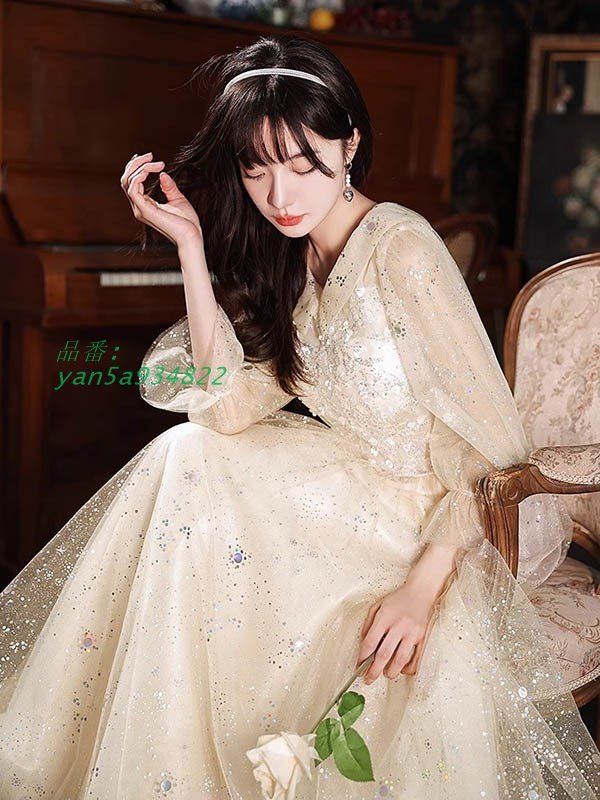 ロングドレス 演奏会 パーティードレス 結婚式 ドレス 袖あり ウェディングドレス 花嫁 お呼ばれ ロング丈 発表会 パーティドレス ドレス ピアノ 二次会 vii4w087817