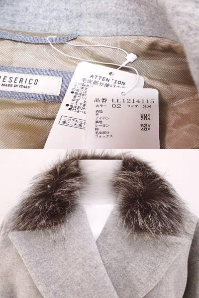 ペセリコ PESERICO チェスターコート ロング丈 38 灰系 グレー フォックス ファー ダブルボタン 裏地 イタリア製 タグ付 WWW_NICORILABO_COM