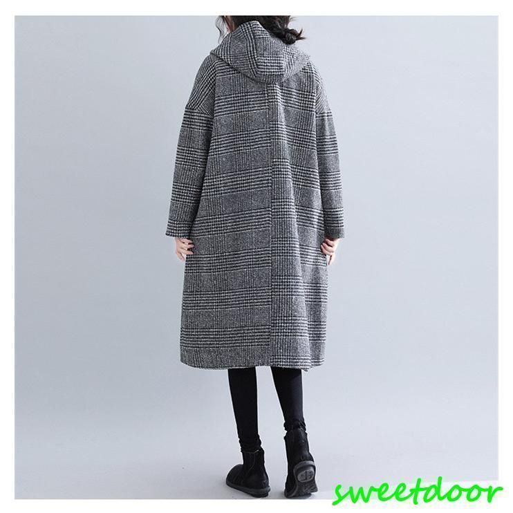 グレンチェック コート チェスターコート レディース ロングコート フード付き アウター チェック柄 上着 ゆったり 大きいサイズ 秋 冬 WWW_NICORILABO_COM