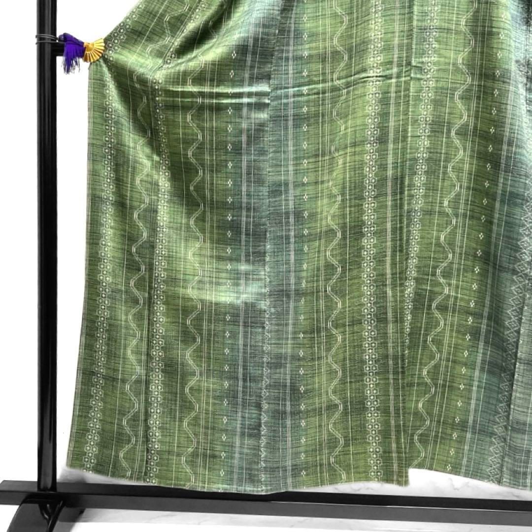 未着用 小紋 縦縞 亀甲 菱 絣 幾何学 グリーン 着物 103b dの検索結果