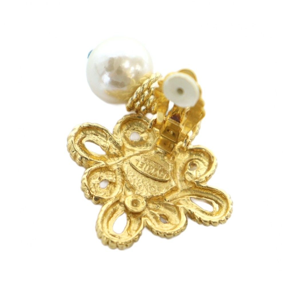 【商品名】ソニアリキエル SONIA RYKIEL ヴィンテージ イヤリング アクセサリー クリップ式 両耳用 SRロゴ フェイクパール ゴールドカラー 金色 ■GY11 /MQ