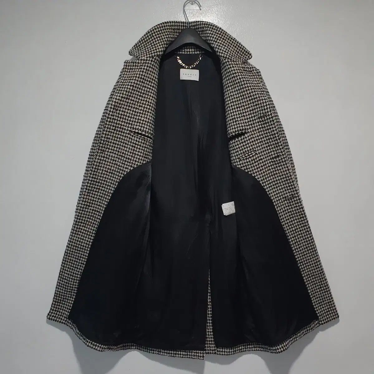 フランスのフレンチ感じ ブランド SANDRO サンドロ Classic ラインで有名な ハウンドトゥース CHECK チェスターフィールド コート です。