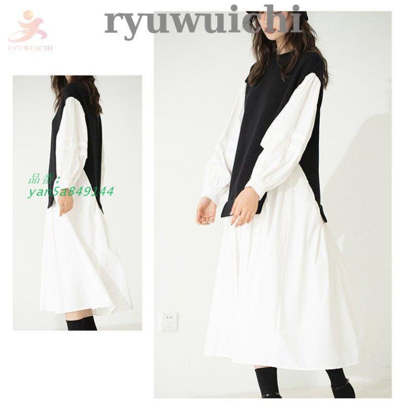 送料無料 ワンピース マキシ丈 ロング丈 ミドル丈 長袖 快適 シンプル 無地 ボタン ポロ襟 肌着 フェイクレイヤード リボン柄 大きいサイズ ソフト カレッジ風 am5a423399