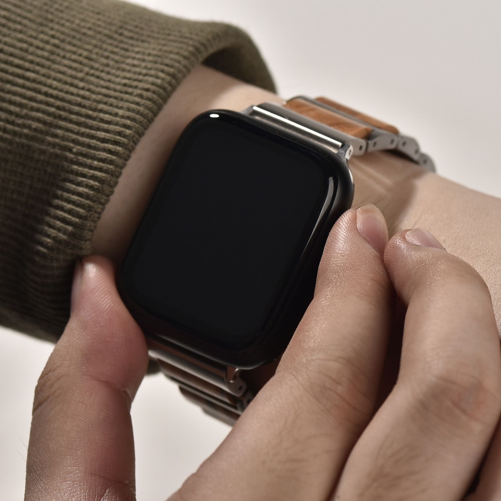 SSP275 Apple Watch 対応 天然木 × ステンレススチール バンド 手作り おしゃれ ハンドメイド かわいい ウッドブレスレット ストラップ メンズ レディース アップルウォッチ バンド 替え ベルト シリーズ 1〜8 対応 プレゼント WWW_NICORILABO_COM
