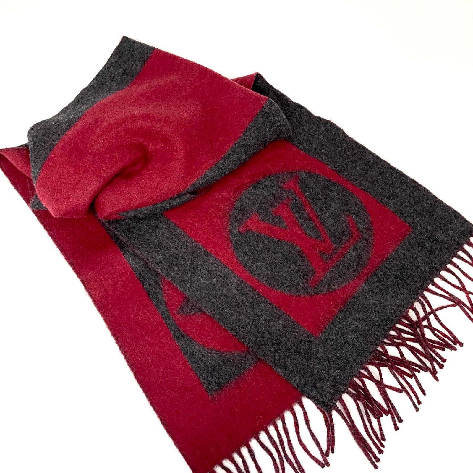 展示品レベル ルイヴィトン エシャルプ カーディフ マフラー ウール アンゴラ 秋冬 男女兼用 ユニセックス レッド×グレー 8211 WWW_NICORILABO_COM