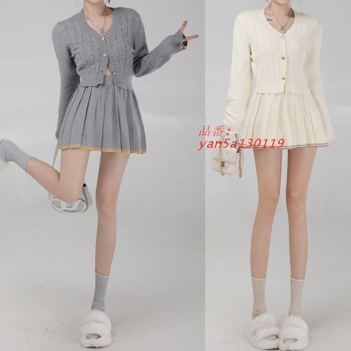 中学生 高校生 レディース 韓国 セットアップ ニット 春秋冬 20代 おしゃれ カーディガン 2点セット プリーツスカート ガー可愛い 通学 10代 ミニ yan5a130119 WWW_NICORILABO_COM