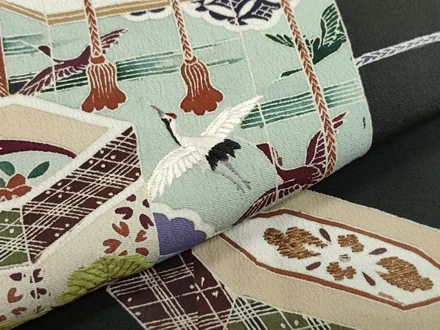 平和屋着物●アンティーク 大正ロマン 黒留袖 刺繍 貝桶飛鶴宝尽くし松文 金糸 正絹 CAAZ0949vfの検索結果
