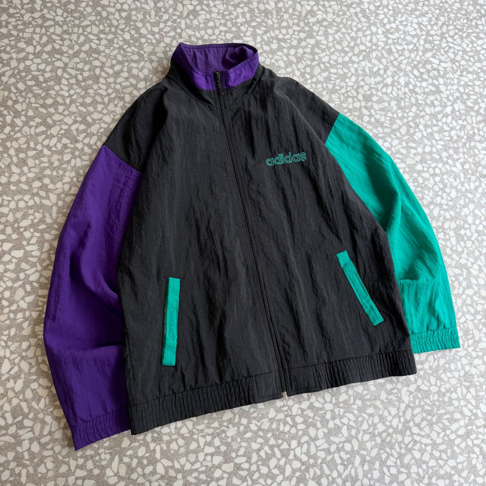 adidas 90’s- big logo nylon jackets アディダス ビッグロゴ ナイロンジャケット 3D立体 クレイジーパターン 古着 ストリート 横ノリ マルチ B系 WWW_NICORILABO_COM